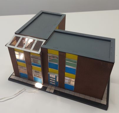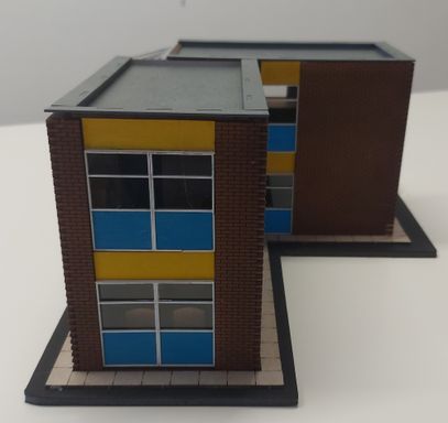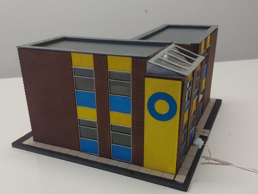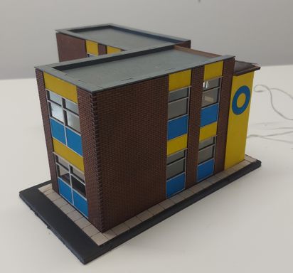 This small office building is made up from 2 of the Railway Laser Lines Gateshead Shed office kits, plus a bit of scratch building for the spiral staircase atrium.