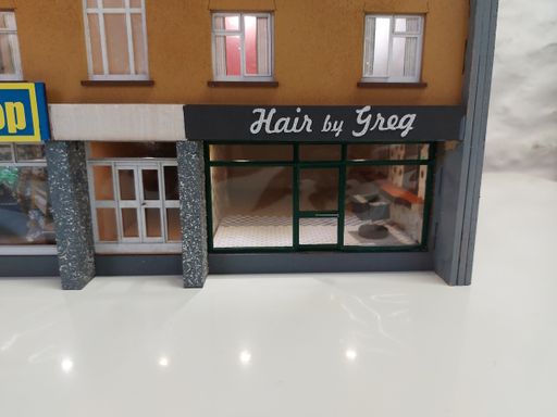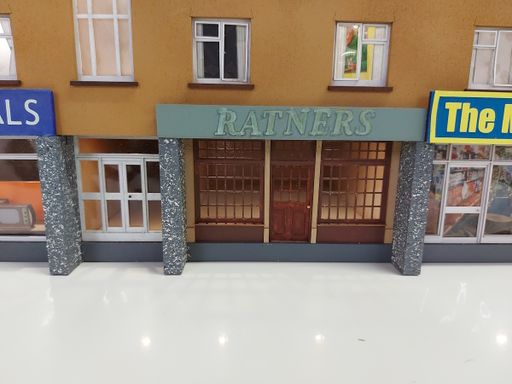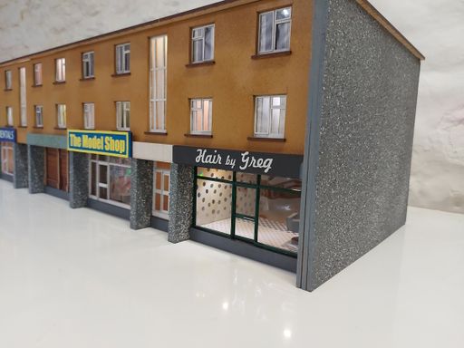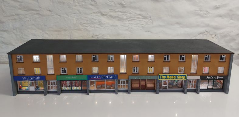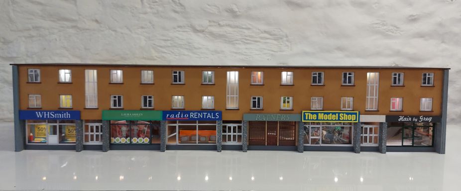As part of a town scene, Simon requested a row of modern shops to fill an 8ft long space. We agreed a pair of shorter shop terraces would be easier to construct, so I looked around for a suitable prototype.