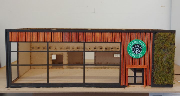 This interpretation of a Starbuck Coffee house is based on several real buildings found trawling the internet.